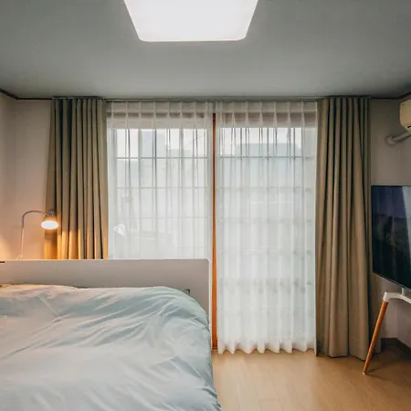 Dispone de un horno de microondas, un hervidor eléctrico y nevera en una cocina completa para el confort diario. Los restaurantes el Palanquin Floor I Ramen y Mandong Bakery se encuentran a 6 minutos a pie. La parada de autobús Donggyodongsamgeori está a un corto paseo del Suite.